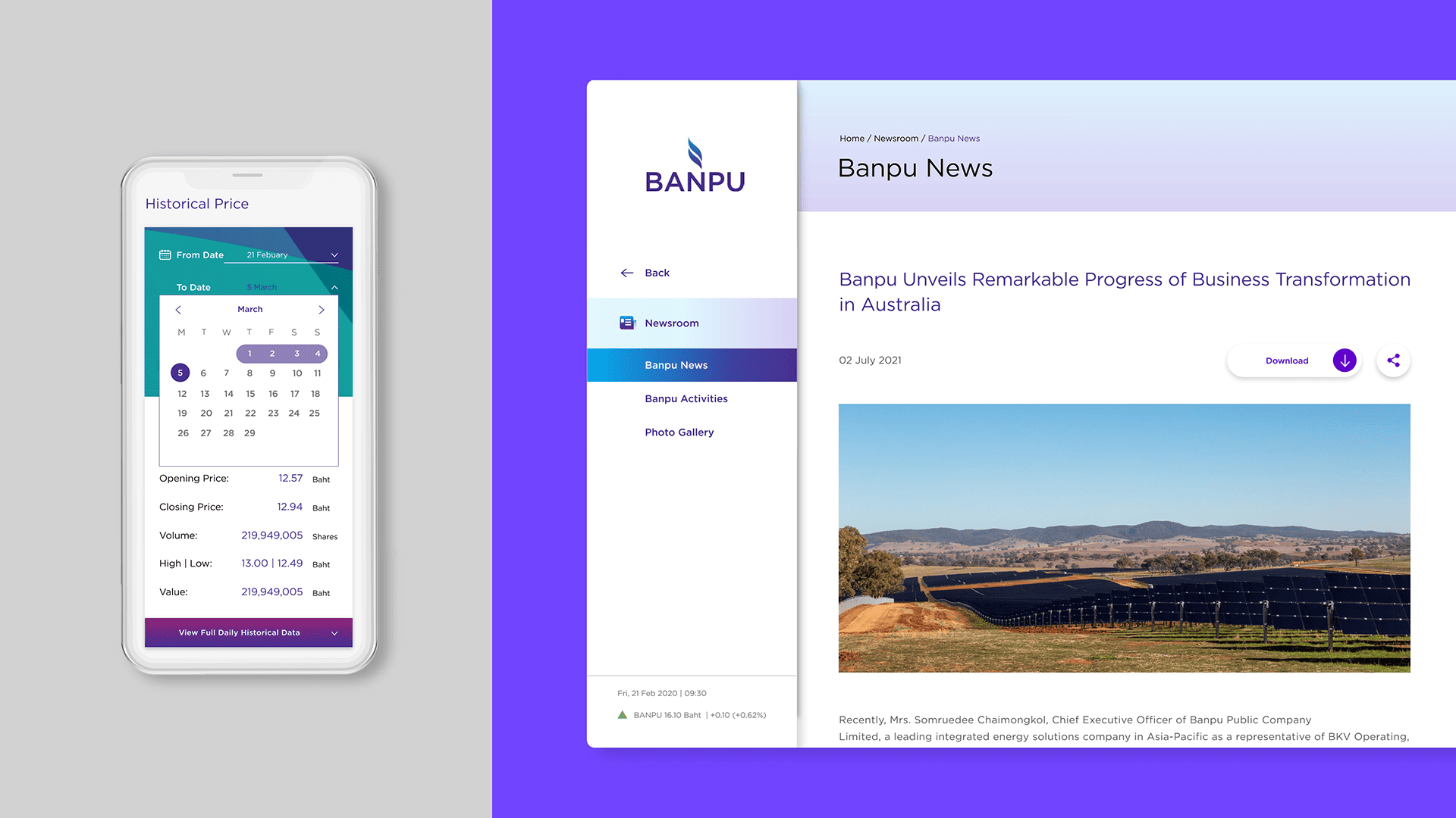 The way forward for our planet earth will bear no other choice but to be greener and smarter. That is also the ultimate strategy of Banpu & Banpu Power Public Company, the essential purpose of their official websites, then, is to exhibit the great potential of the companies in becoming the leaders in energy producer of Asia, with innovation, technology, and sustainability as its virtues. The two websites are designed to serve as a main channel in content communication, and also a pride that reflects the committed passion of the companies.With the two keywords of ‘greener’ and ‘smarter’, and a sheer degree of data complexity; we created these websites by organising information into contents, divided into categories according to feature usage. While maintaining a core principle of user-friendliness, the interface is made certain to be smoothly responsive in all devices. The structure of content is digested to be as easiest to grasp as possible, with illustrations and infographics to help facilitate user’s perception, ultimately, of the company’s grand mission of becoming a world leader in the future of smart energy.