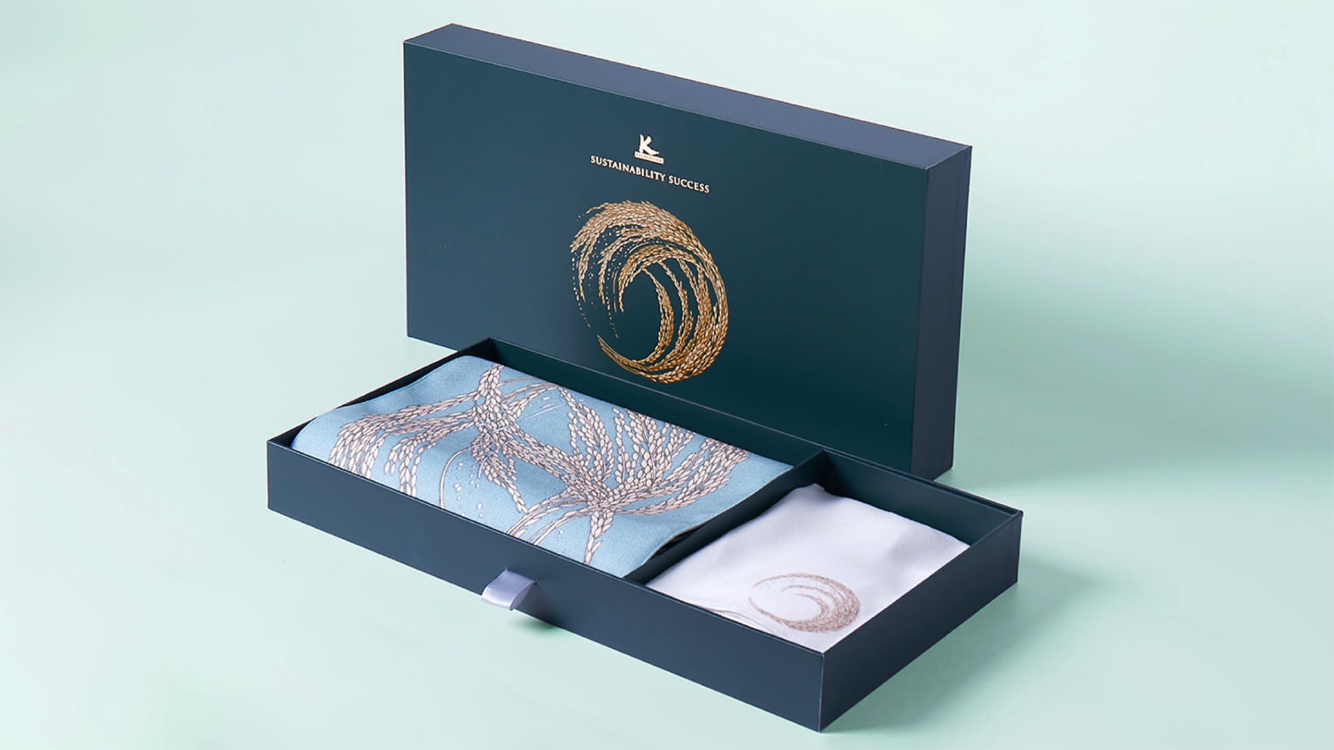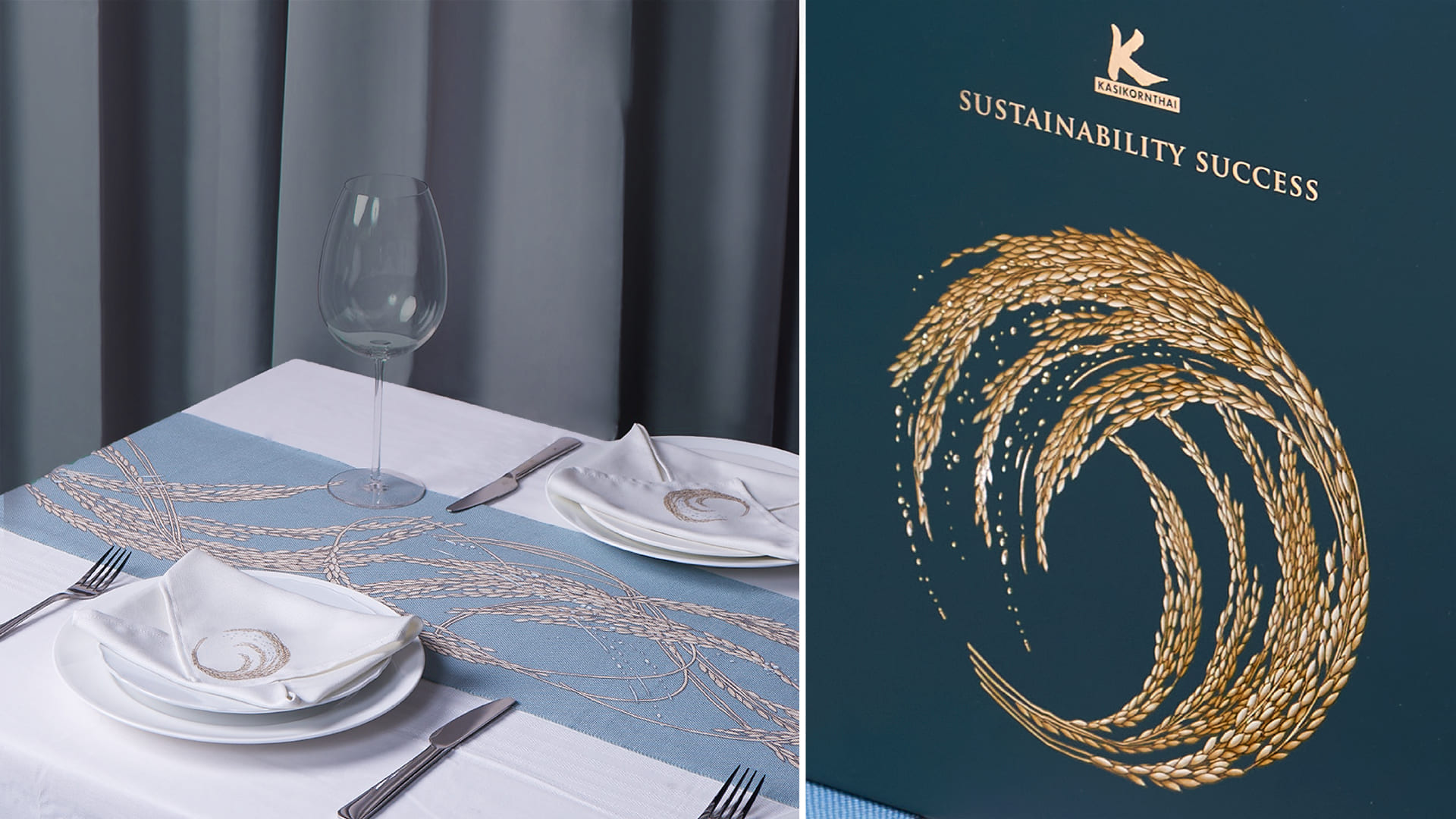 With the resolute determination to prioritise environment and energy conservation, Kasikorn Bank has embedded in its strategies a clear purpose to achieve this certain goal. Thus, the Bank’s New Year Gift was set to be designed under the big concept of environmental sustainability with creativity for innovation, to reflect the bank’s leading position as a financial innovator. Dining Table Mat Gift Set has its inspiration from the artist’s painting of rice ears. The bundling up and weaving together of the rice symbolise the unity, the friendship, and the integrity between people; ultimately to thrive together towards the future.To elaborate the important of sustainability, the gifts itself were made of recycled plastic bottles according to the process of ‘upcycling’ which is to transform the old materials to be the new valuable materials entirely. This New Year Gift Set would pass along prides to the receivers as they themselves can also take part in the environment protection just by using it, and hopefully would help inspiring people to create more actions of sustainability in Thailand.