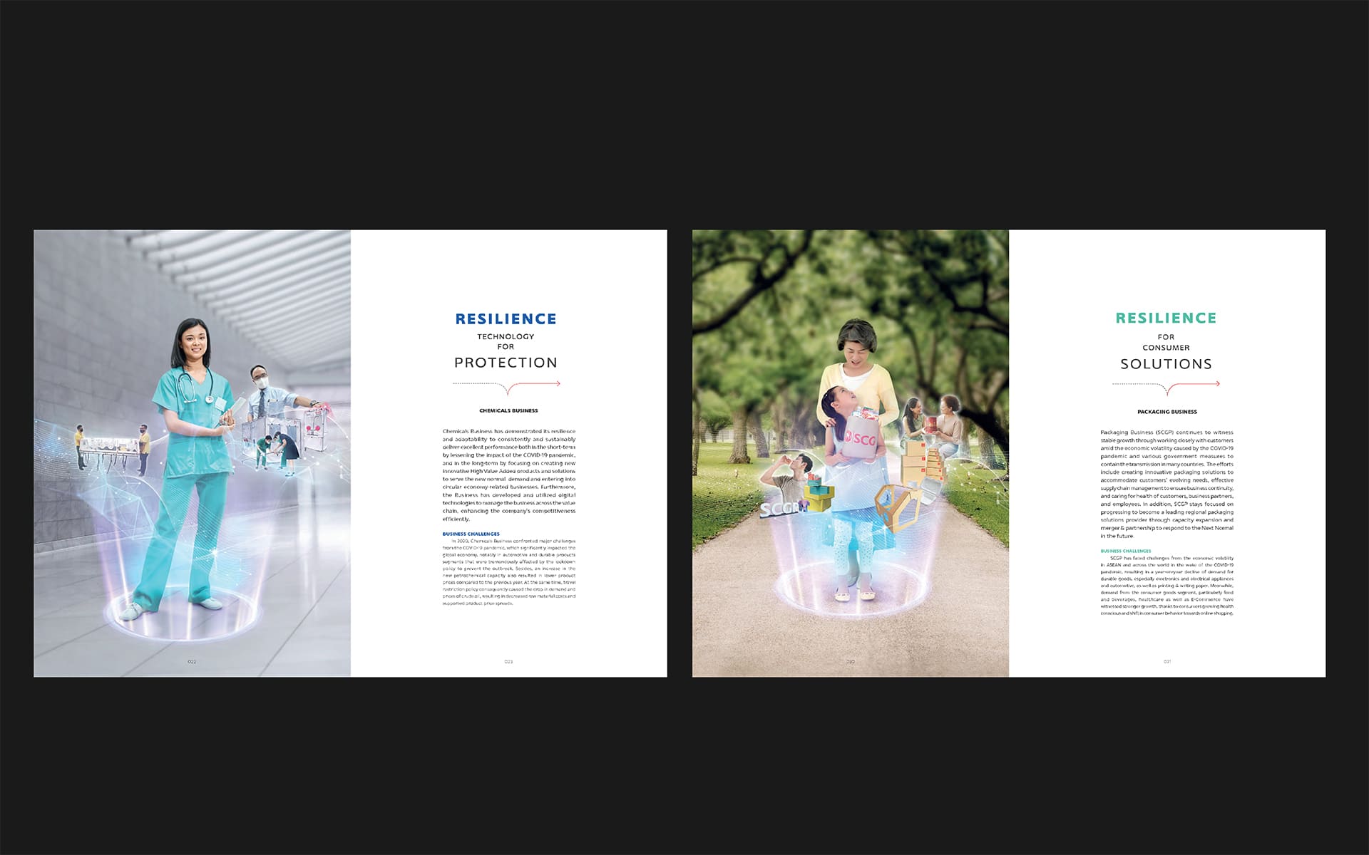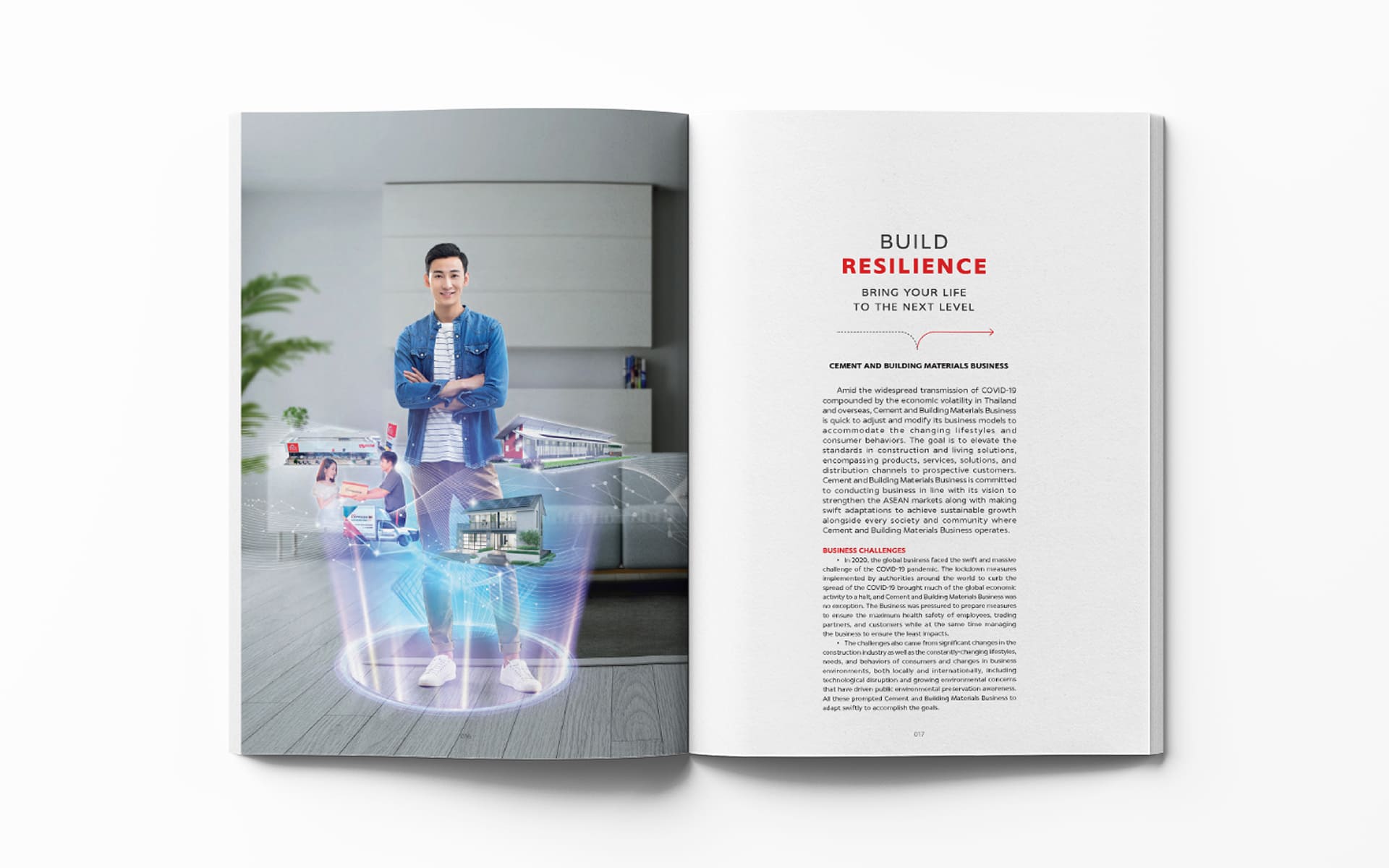 During these days that abrupt changes are constant and unpredictable, mainly due to the severe effect of Covid-19 pandemic. The Siam Cement Public Company Limited (SCG), as one leading corporation in the industry of South East Asia, has adapted and adopted the core principle of ‘resilience’ in order to defy the various challenges and keep marching forward into the better future.Enhancing quality of people’s life and wellbeing by providing only exceptional products and services is always the company’s ultimate mission. And with the ever-changing circumstances, especially the Corona Virus global spreading that began in 2020; people all over the world found themselves entering the age of ‘New Normal’. SCG rises to this challenge with a resilience, an agility, an appetite for innovation, and a readiness to embrace whatever future may bring. We communicate this dynamic forces of SCG by using hologram images that reflect the company’s creativity and imagination under the grand concept of ‘Building Resilience for the Next Normal’.