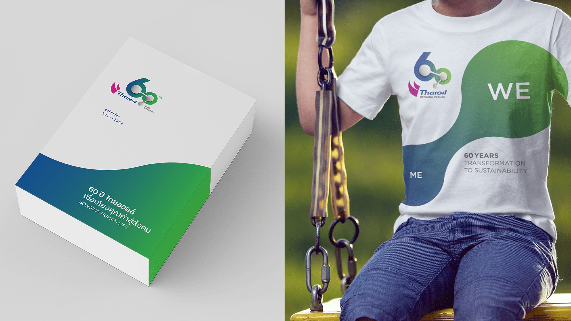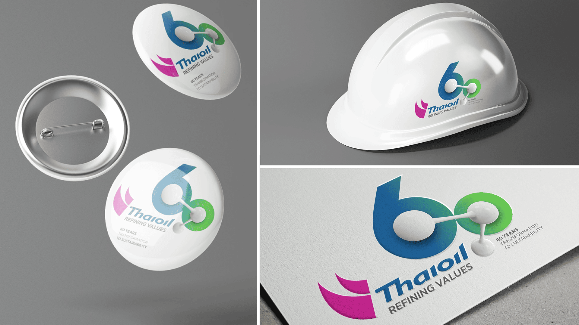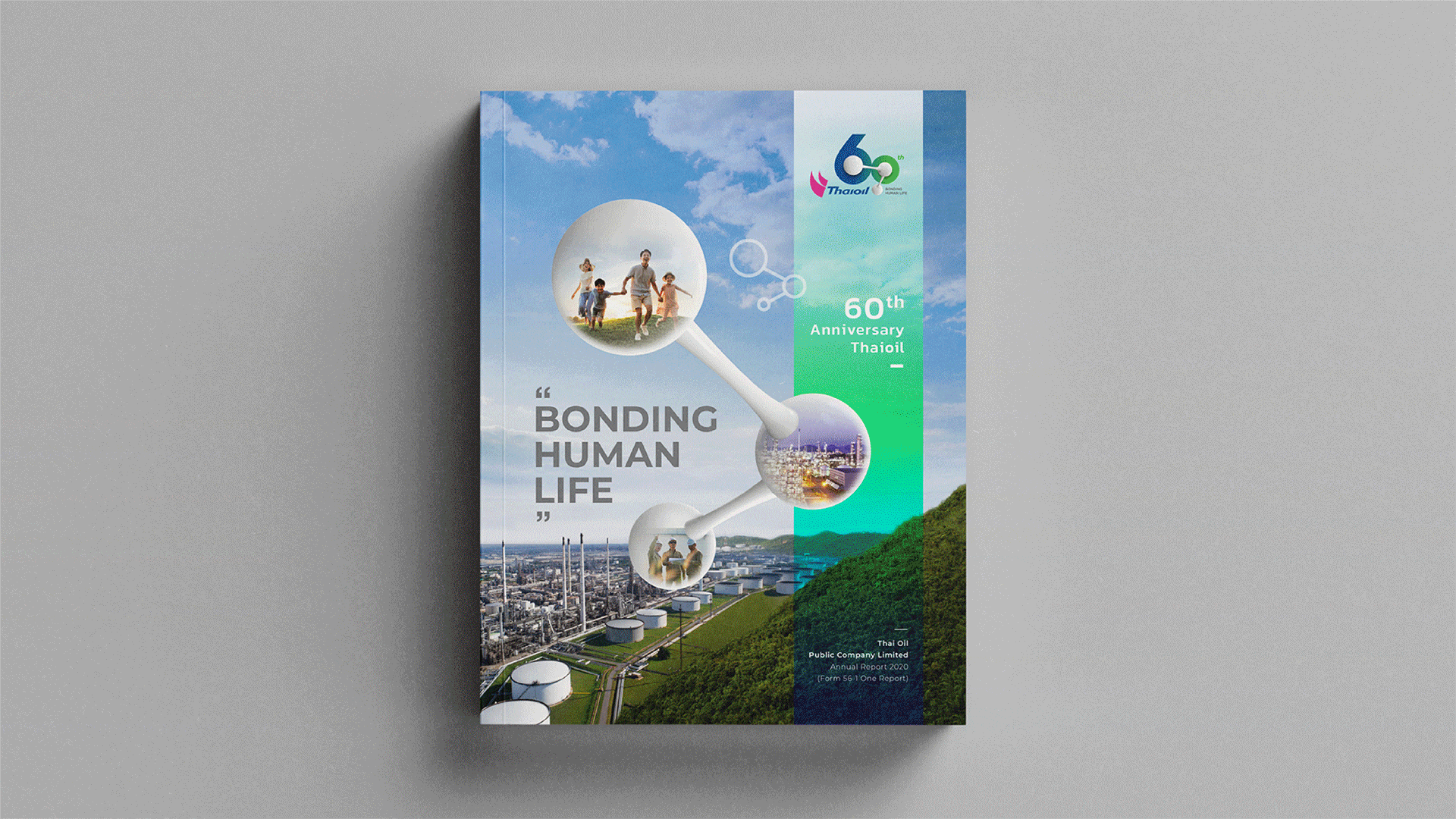Through all 60 years, Thaioil has always been an infallible force behind Thailand’s energy security. And with an aim to be a leader of fully integrated refining and petrochemical company in Asia Pacific, Thaioil needed to transform itself to strengthen their bonds with people and communities. Such transformation was conducted, first and foremost, through corporate communication. From close relations with stakeholders and between internal departments, the brand’s conversation would then expand more inclusively to cover the lifetime bond that the company has with the nation and its people. Under the concept ‘Bonding Human Life’, we symbolised the chemical bond of a molecules as the company’s logo, and strategically placed them upon the numerical shape of 60. Three nodes of the molecule represent three essential cores of the business that were bonded together; Thaioil itself, the society, and the environment.