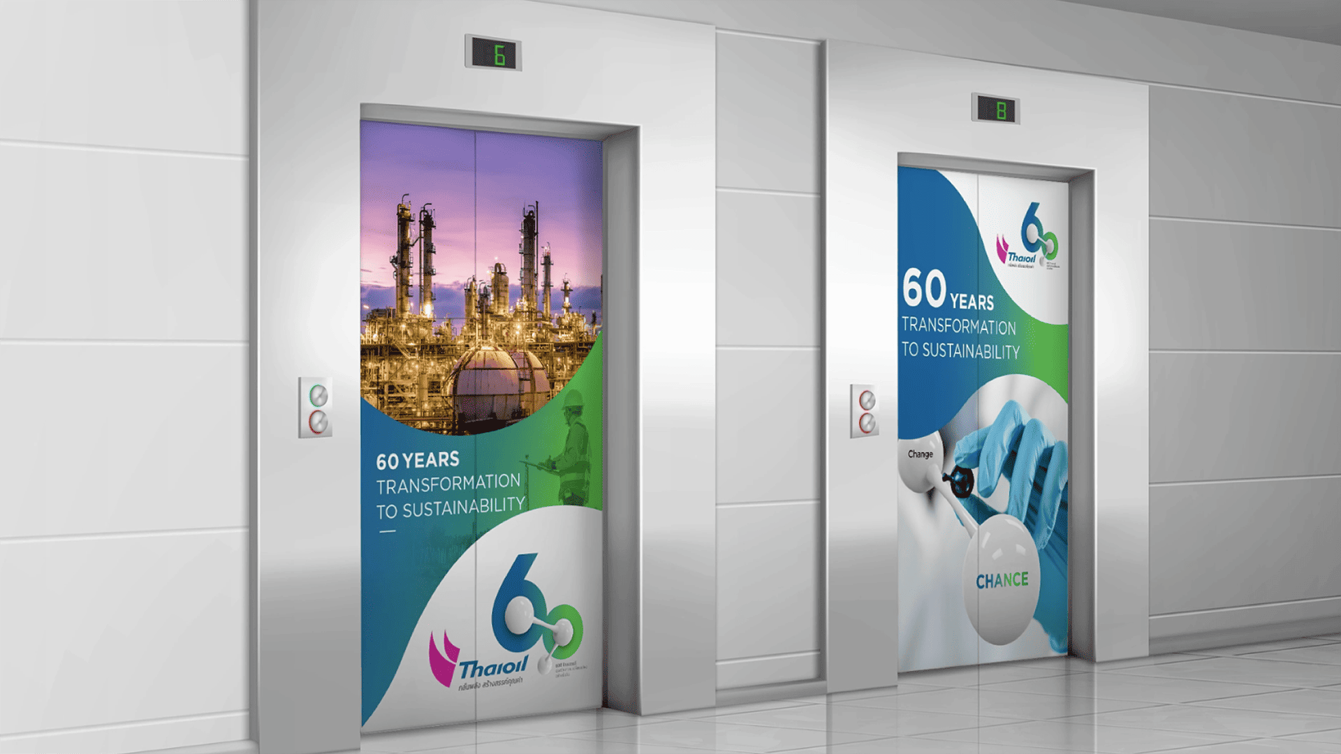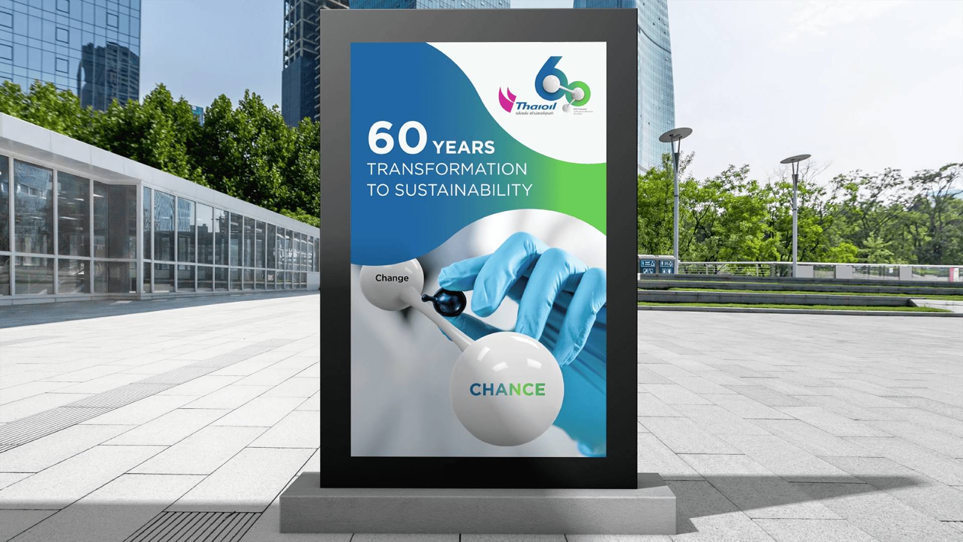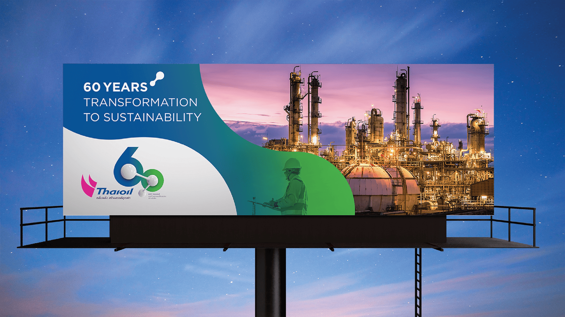 Through all 60 years, Thaioil has always been an infallible force behind Thailand’s energy security. And with an aim to be a leader of fully integrated refining and petrochemical company in Asia Pacific, Thaioil needed to transform itself to strengthen their bonds with people and communities. Such transformation was conducted, first and foremost, through corporate communication. From close relations with stakeholders and between internal departments, the brand’s conversation would then expand more inclusively to cover the lifetime bond that the company has with the nation and its people. Under the concept ‘Bonding Human Life’, we symbolised the chemical bond of a molecules as the company’s logo, and strategically placed them upon the numerical shape of 60. Three nodes of the molecule represent three essential cores of the business that were bonded together; Thaioil itself, the society, and the environment.