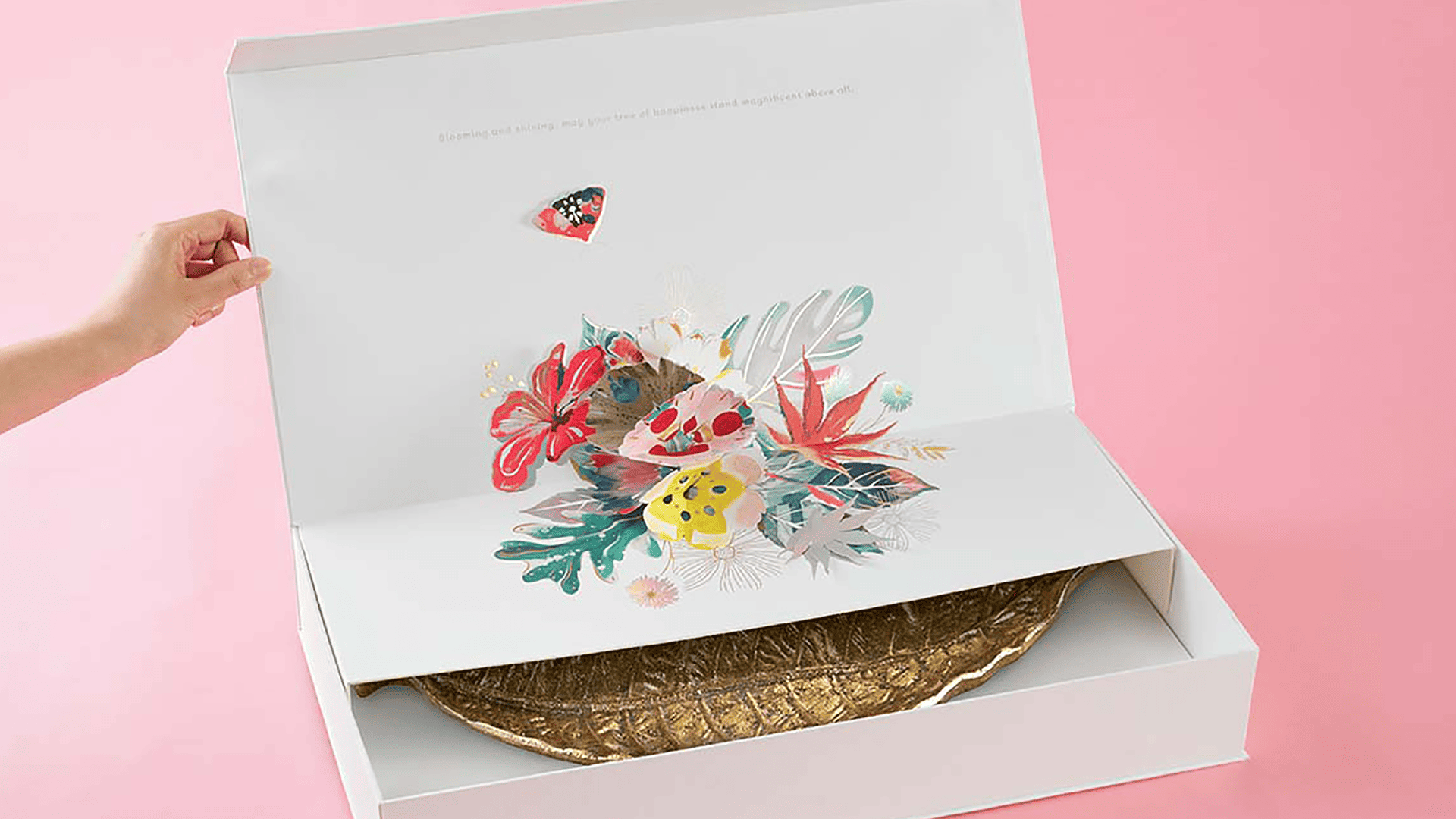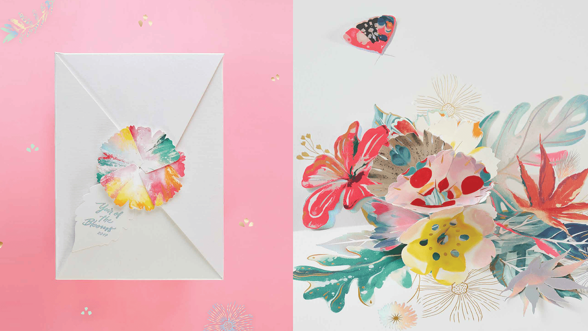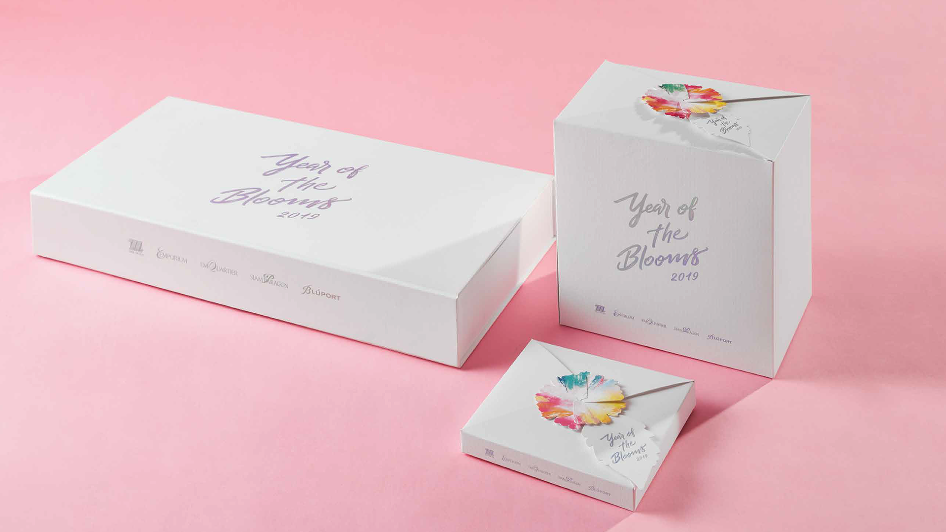 This special gift set from The Mall Group imparts the greeting to embrace the New Year with joy under the concept of “The Blooming Year”.We create the visual of flora and fauna to represent happiness and joyful blossom through a fun package using the special pop up technique of colourful flowers combined with a rainbow foil technique, and folding technique to form a box into a shape of a flower to add colours to the celebration festival as well as creating a strong impression within the recipient.